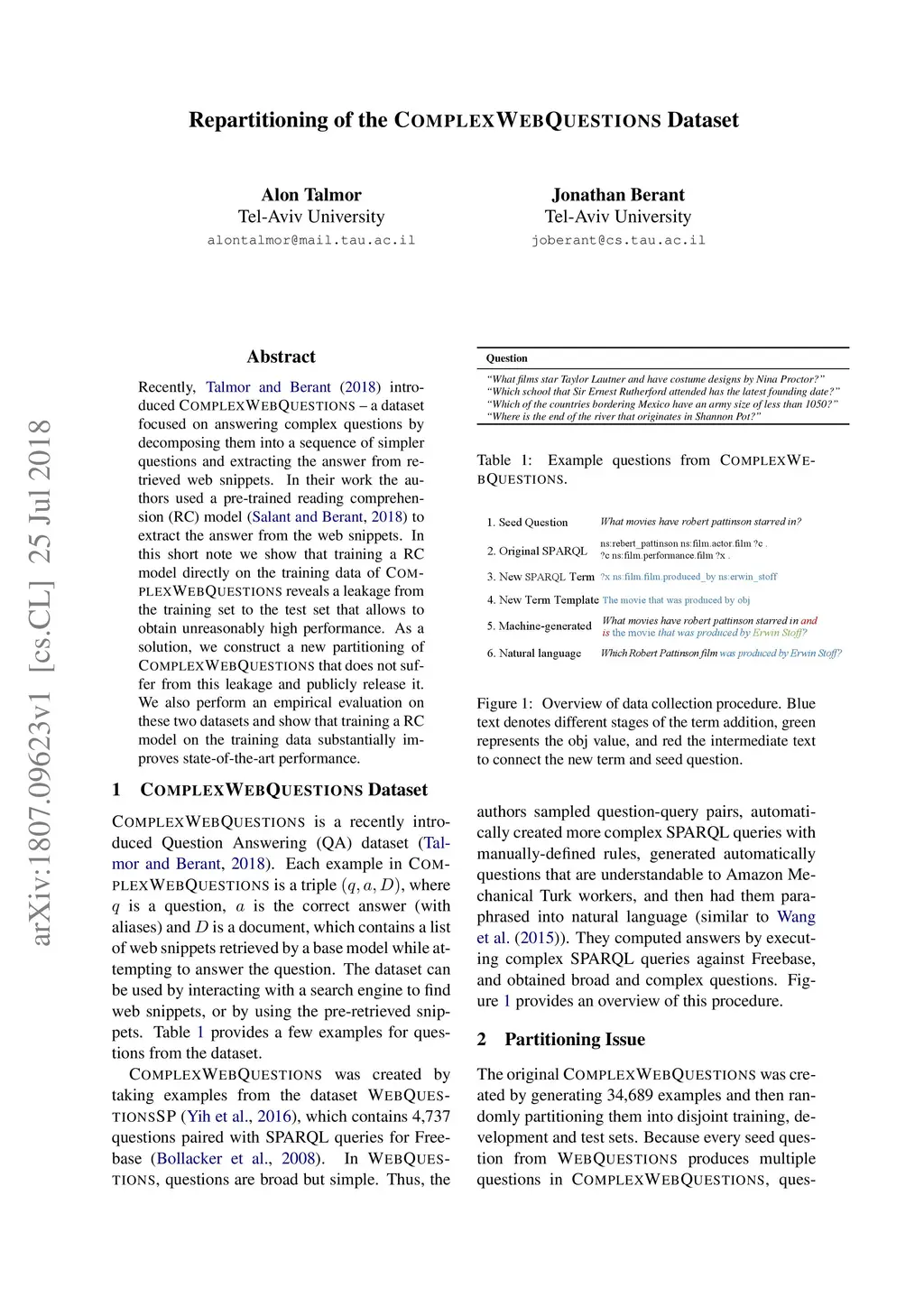 Repartitioning of the ComplexWebQuestions Dataset