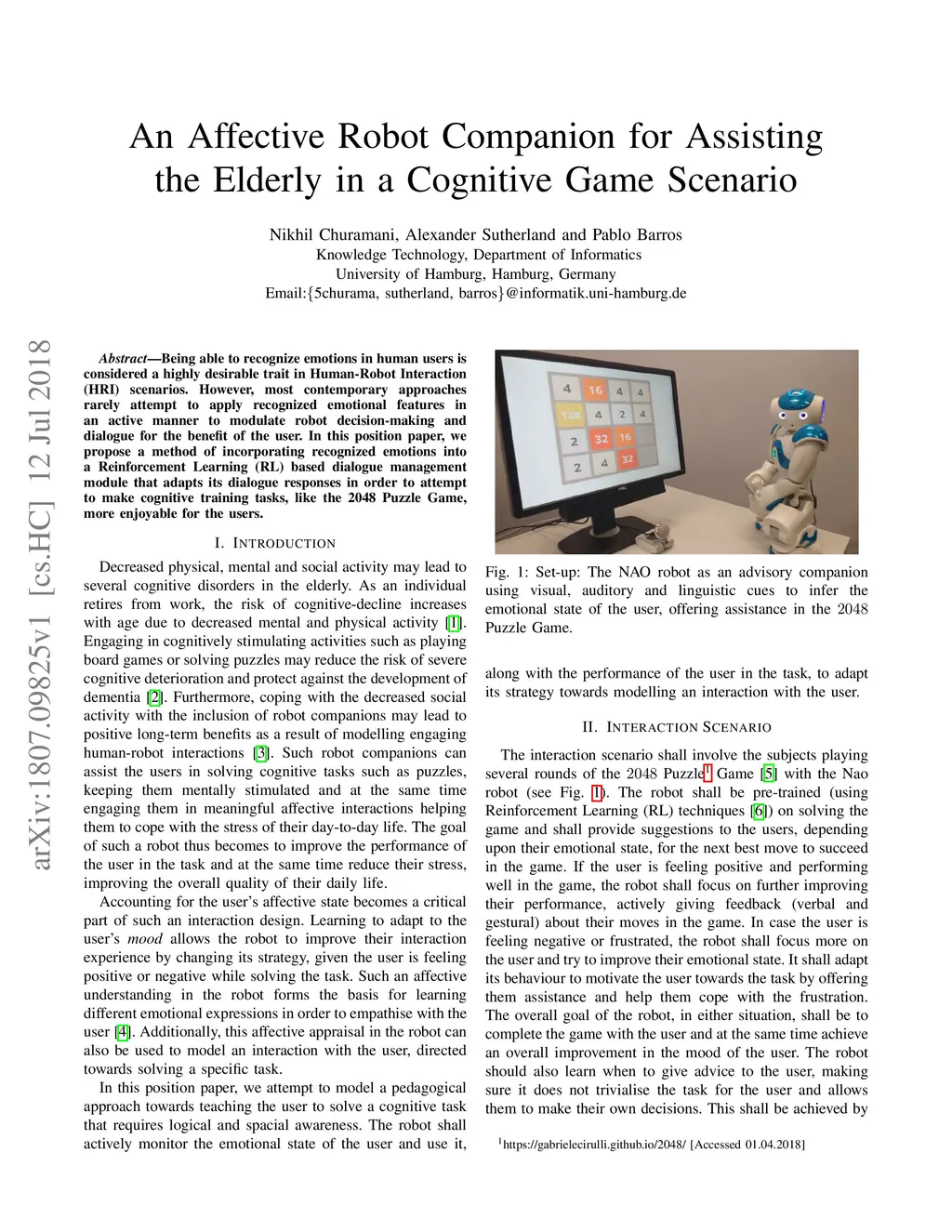 An Affective Robot Companion for Assisting the Elderly in a Cognitive