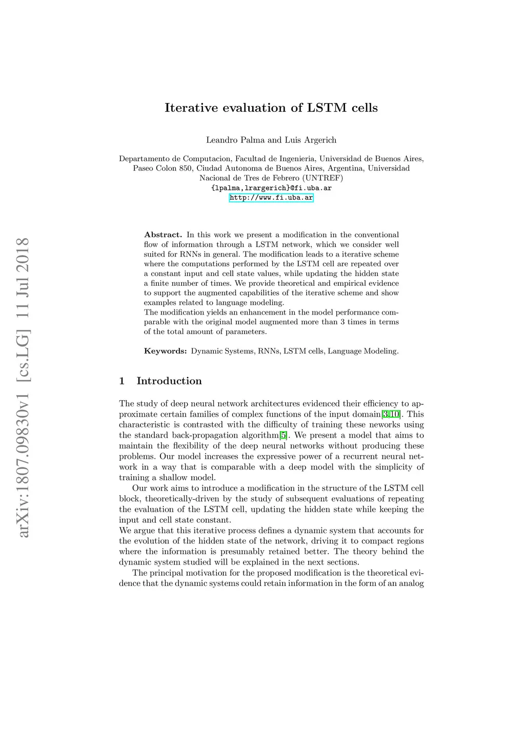 In this work we present a modification in the conventional flow of information through a LSTM network, which we consider well suited for RNNs in general. The modification leads to a iterative scheme where the computations performed by the LSTM cell are repeated over a constant input and cell state values, while updating the hidden state a finite number of times. We provide theoretical and empirical evidence to support the augmented capabilities of the iterative scheme and show examples related to language modeling. The modification yields an enhancement in the model performance comparable with the original model augmented more than 3 times in terms of the total amount of parameters.
