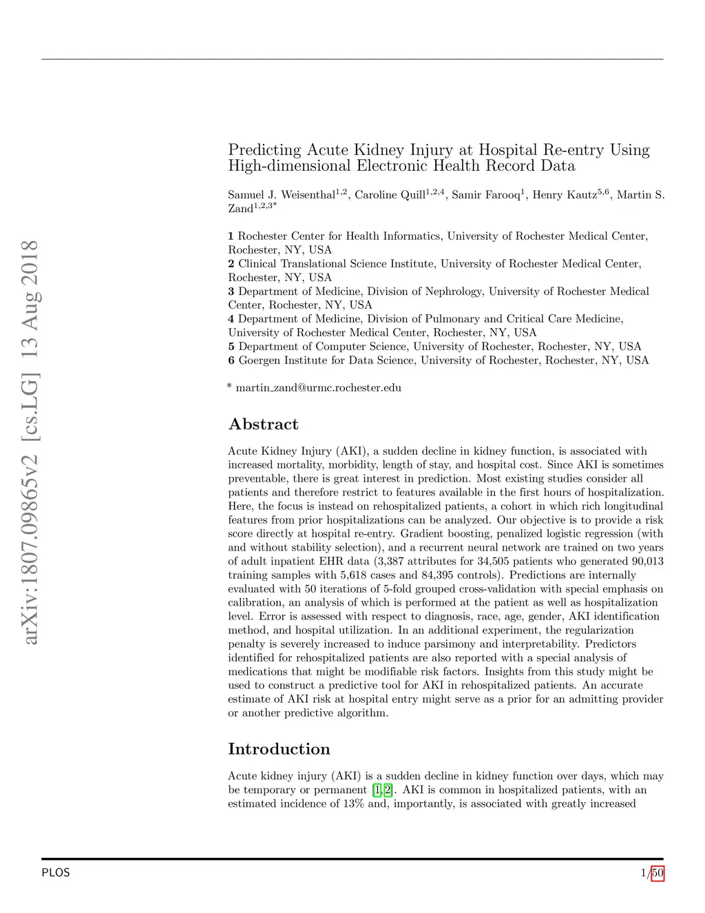 Predicting Acute Kidney Injury at Hospital Re-entry Using