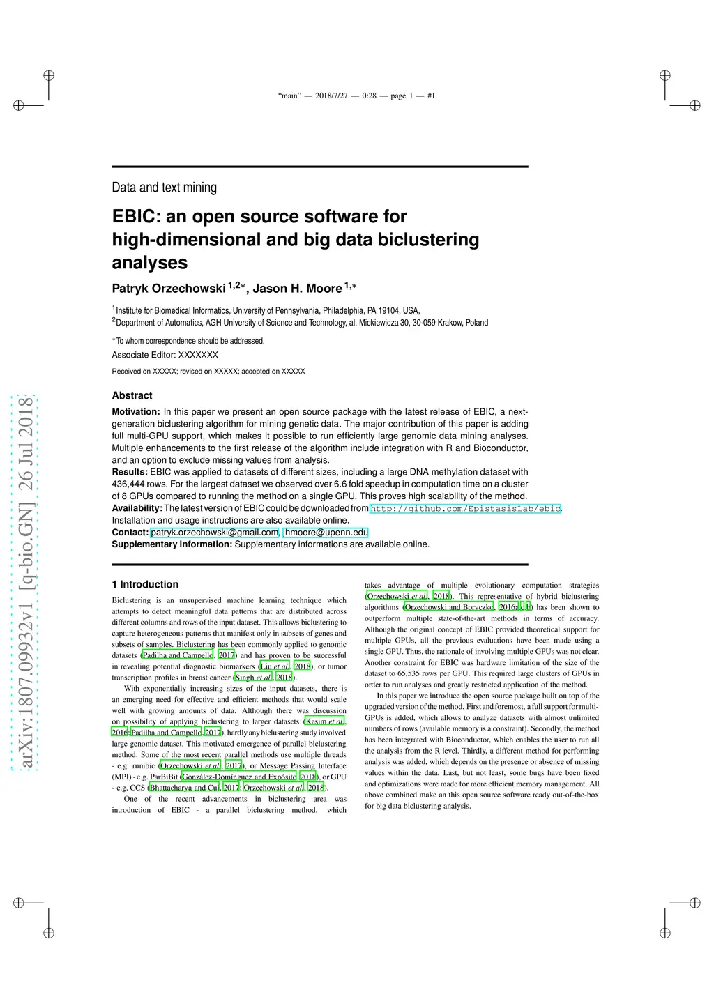 EBIC: an open source software for high-dimensional and big data