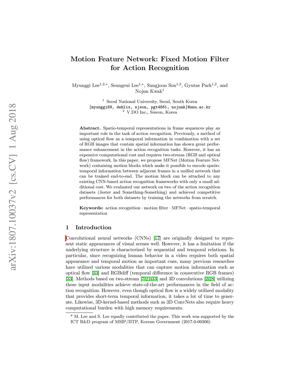 Motion Feature Network: Fixed Motion Filter for Action Recognition