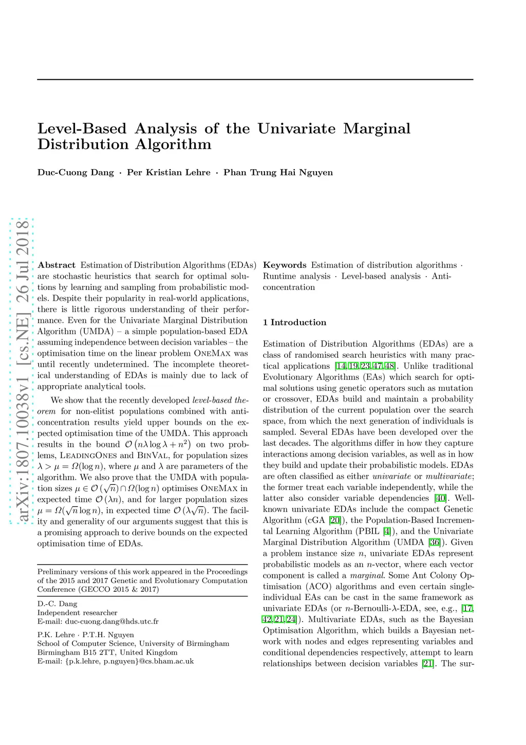 Estimation of Distribution Algorithms (EDAs) are stochastic heuristics that search for optimal solutions by learning and sampling from probabilistic models. Despite their popularity in real-world applications, there is little rigorous understanding of their performance. Even for the Univariate Marginal Distribution Algorithm (UMDA) -- a simple population-based EDA assuming independence between decision variables -- the optimisation time on the linear problem OneMax was until recently undetermined. The incomplete theoretical understanding of EDAs is mainly due to lack of appropriate analytical tools. We show that the recently developed level-based theorem for non-elitist populations combined with anti-concentration results yield upper bounds on the expected optimisation time of the UMDA. This approach results in the bound on two problems, LeadingOnes and BinVal, for population sizes , where and are parameters of the algorithm. We also prove that the UMDA with population sizes optimises OneMax in expected time , and for larger population sizes , in expected time . The facility and generality of our arguments suggest that this is a promising approach to derive bounds on the expected optimisation time of EDAs.