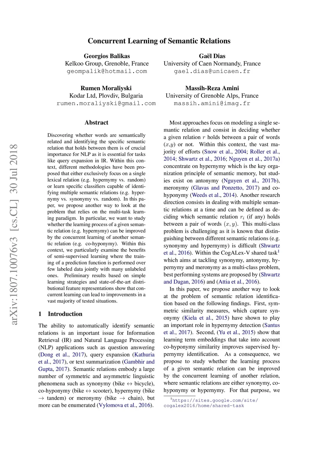 Discovering whether words are semantically related and identifying the specific semantic relation that holds between them is of crucial importance for NLP as it is essential for tasks like query expansion in IR. Within this context, different methodologies have been proposed that either exclusively focus on a single lexical relation (e.g. hypernymy vs. random) or learn specific classifiers capable of identifying multiple semantic relations (e.g. hypernymy vs. synonymy vs. random). In this paper, we propose another way to look at the problem that relies on the multi-task learning paradigm. In particular, we want to study whether the learning process of a given semantic relation (e.g. hypernymy) can be improved by the concurrent learning of another semantic relation (e.g. co-hyponymy). Within this context, we particularly examine the benefits of semi-supervised learning where the training of a prediction function is performed over few labeled data jointly with many unlabeled ones. Preliminary results based on simple learning strategies and state-of-the-art distributional feature representations show that concurrent learning can lead to improvements in a vast majority of tested situations.