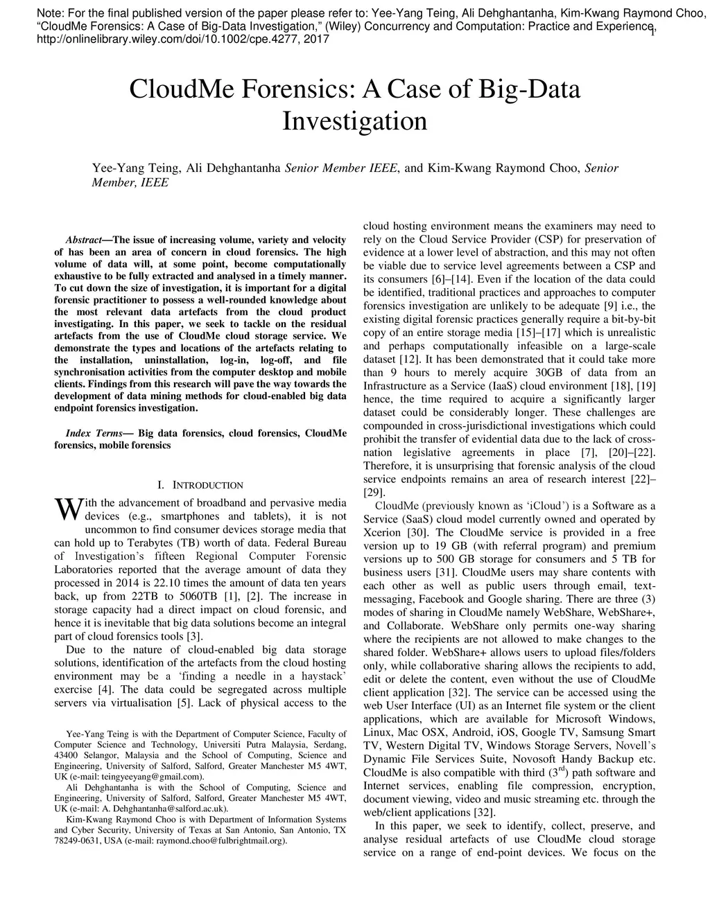 CloudMe Forensics: A Case of Big-Data Investigation