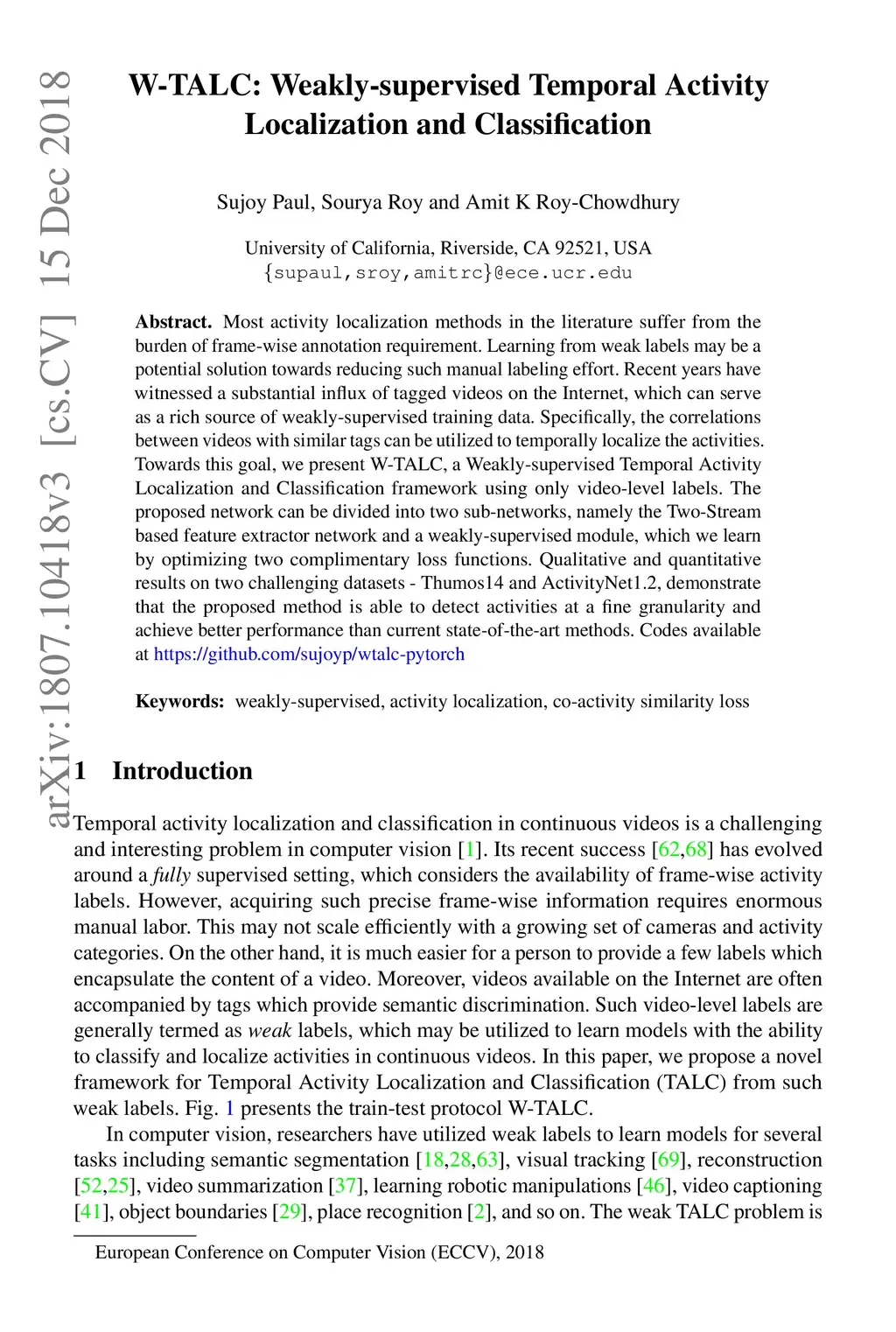 W-TALC: Weakly-supervised Temporal Activity Localization and