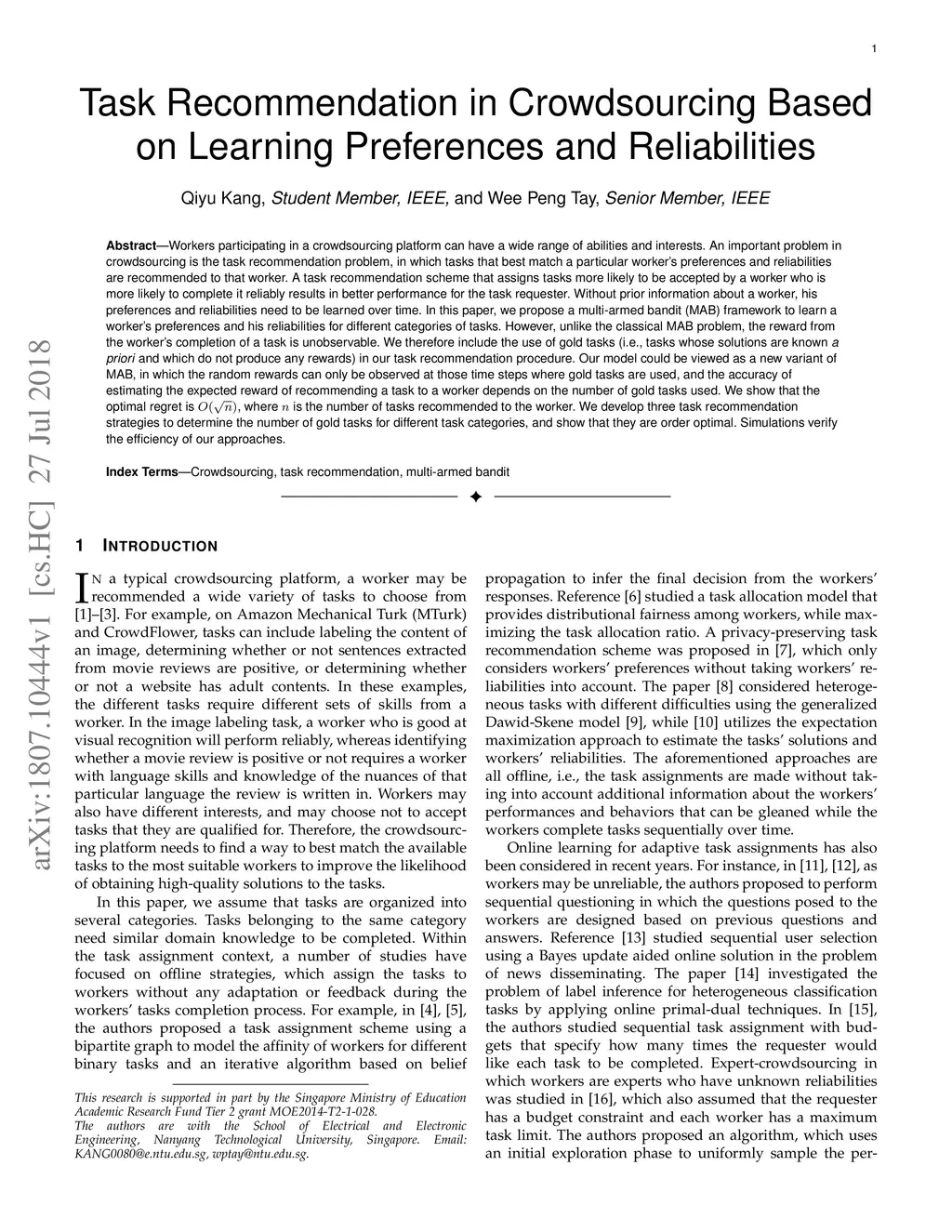 Task Recommendation in Crowdsourcing Based on Learning Preferences and