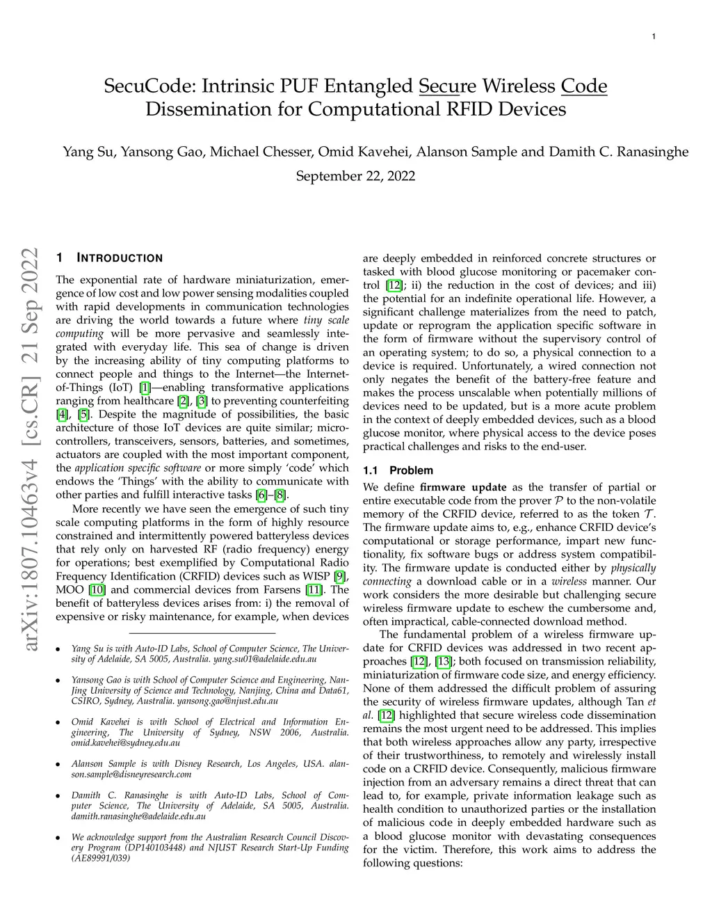 SecuCode: Intrinsic PUF Entangled Secure Wireless Code Dissemination for