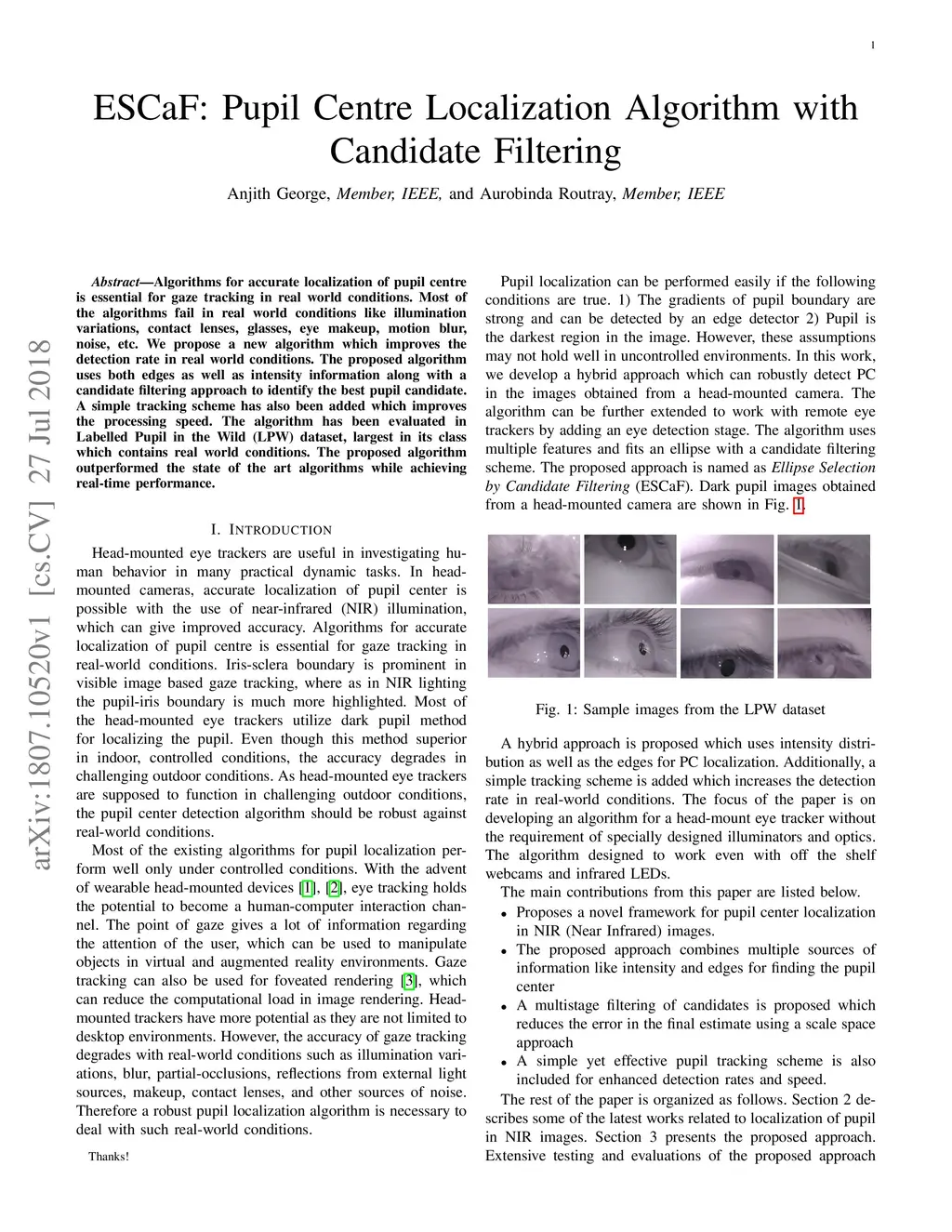 ESCaF: Pupil Centre Localization Algorithm with Candidate Filtering