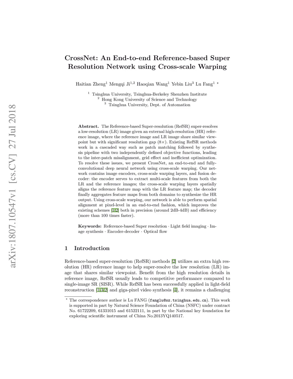 CrossNet: An End-to-end Reference-based Super Resolution Network using