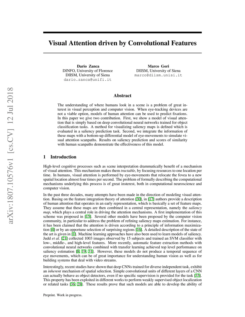 Visual Attention driven by Convolutional Features
