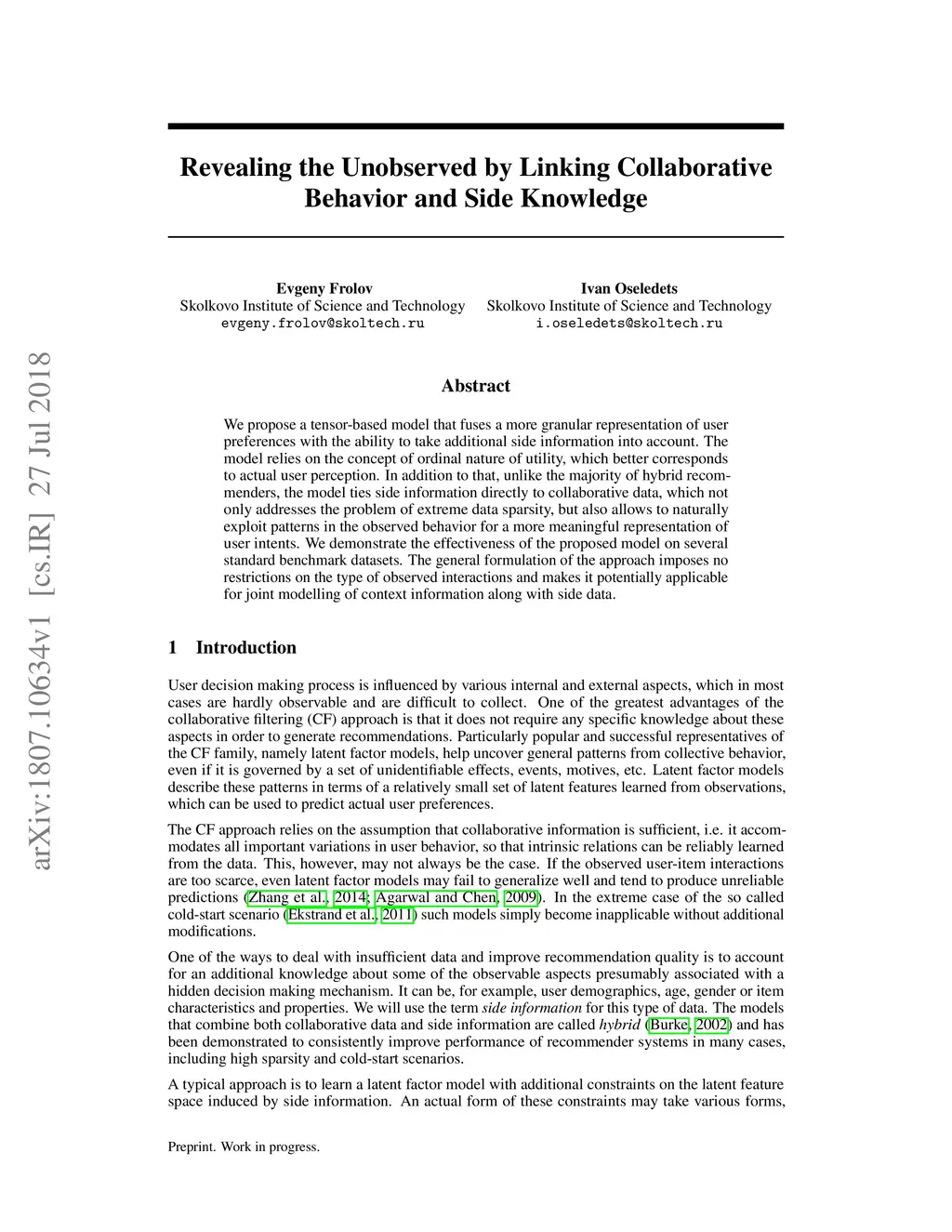 Revealing the Unobserved by Linking Collaborative Behavior and Side