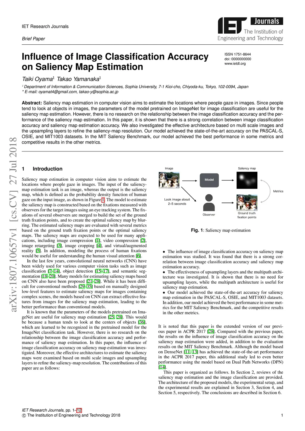 Saliency map estimation in computer vision aims to estimate the locations where people gaze in images. Since people tend to look at objects in images, the parameters of the model pretrained on ImageNet for image classification are useful for the saliency map estimation. However, there is no research on the relationship between the image classification accuracy and the performance of the saliency map estimation. In this paper, it is shown that there is a strong correlation between image classification accuracy and saliency map estimation accuracy. We also investigated the effective architecture based on multi scale images and the upsampling layers to refine the saliency-map resolution. Our model achieved the state-of-the-art accuracy on the PASCAL-S, OSIE, and MIT1003 datasets. In the MIT Saliency Benchmark, our model achieved the best performance in some metrics and competitive results in the other metrics.