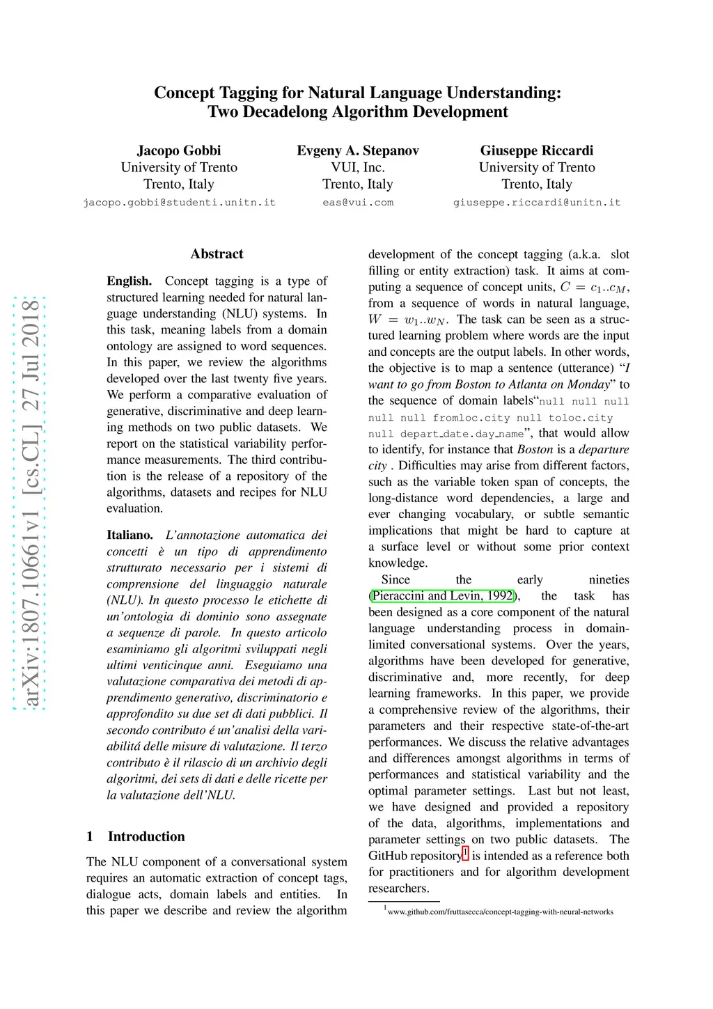 Concept tagging is a type of structured learning needed for natural language understanding (NLU) systems. In this task, meaning labels from a domain ontology are assigned to word sequences. In this paper, we review the algorithms developed over the last twenty five years. We perform a comparative evaluation of generative, discriminative and deep learning methods on two public datasets. We report on the statistical variability performance measurements. The third contribution is the release of a repository of the algorithms, datasets and recipes for NLU evaluation.