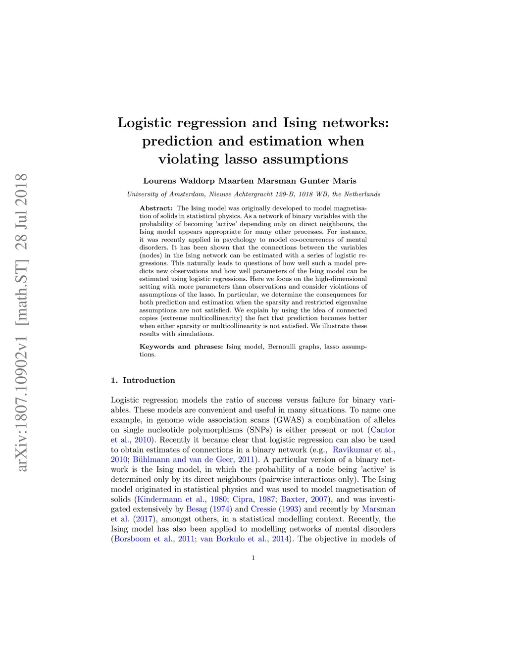 The Ising model was originally developed to model magnetisation of solids in statistical physics. As a network of binary variables with the probability of becoming áctive' depending only on direct neighbours, the Ising model appears appropriate for many other processes. For instance, it was recently applied in psychology to model co-occurrences of mental disorders. It has been shown that the connections between the variables (nodes) in the Ising network can be estimated with a series of logistic regressions. This naturally leads to questions of how well such a model predicts new observations and how well parameters of the Ising model can be estimated using logistic regressions. Here we focus on the high-dimensional setting with more parameters than observations and consider violations of assumptions of the lasso. In particular, we determine the consequences for both prediction and estimation when the sparsity and restricted eigenvalue assumptions are not satisfied. We explain by using the idea of connected copies (extreme multicollinearity) the fact that prediction becomes better when either sparsity or multicollinearity is not satisfied. We illustrate these results with simulations.
