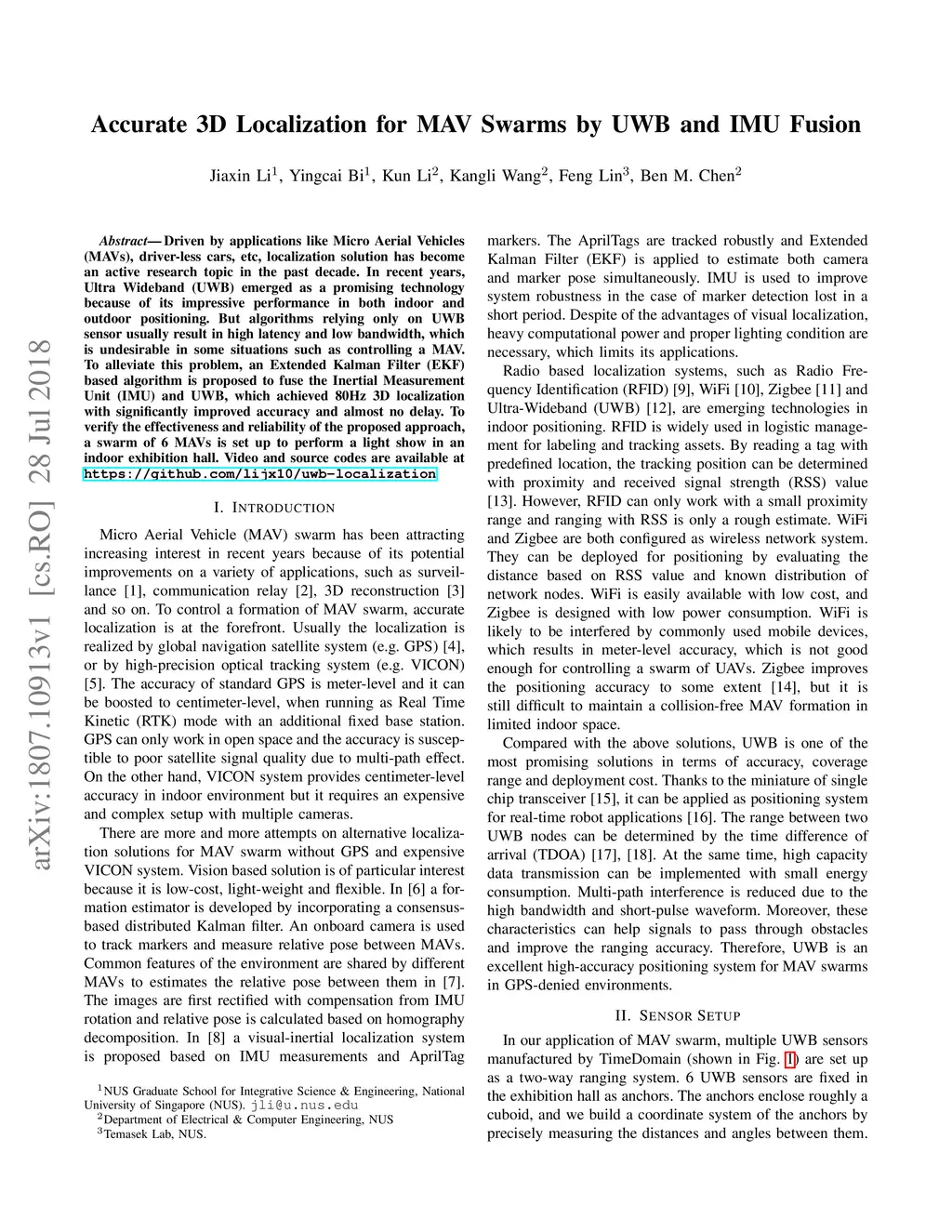Accurate 3D Localization for MAV Swarms by UWB and IMU Fusion