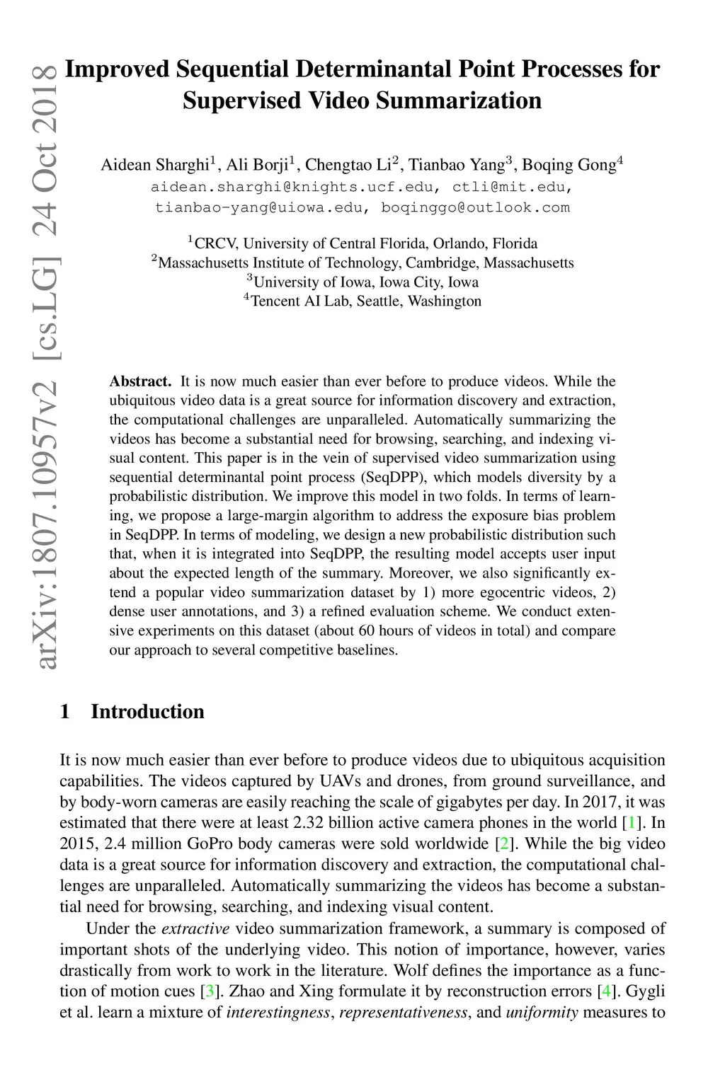 Improving Sequential Determinantal Point Processes for Supervised Video Summarization