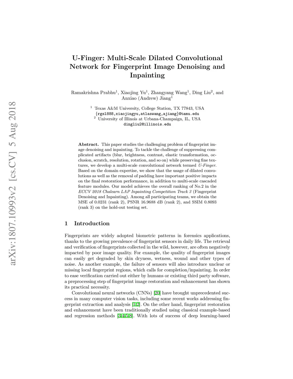 U-Finger: Multi-Scale Dilated Convolutional Network for Fingerprint
