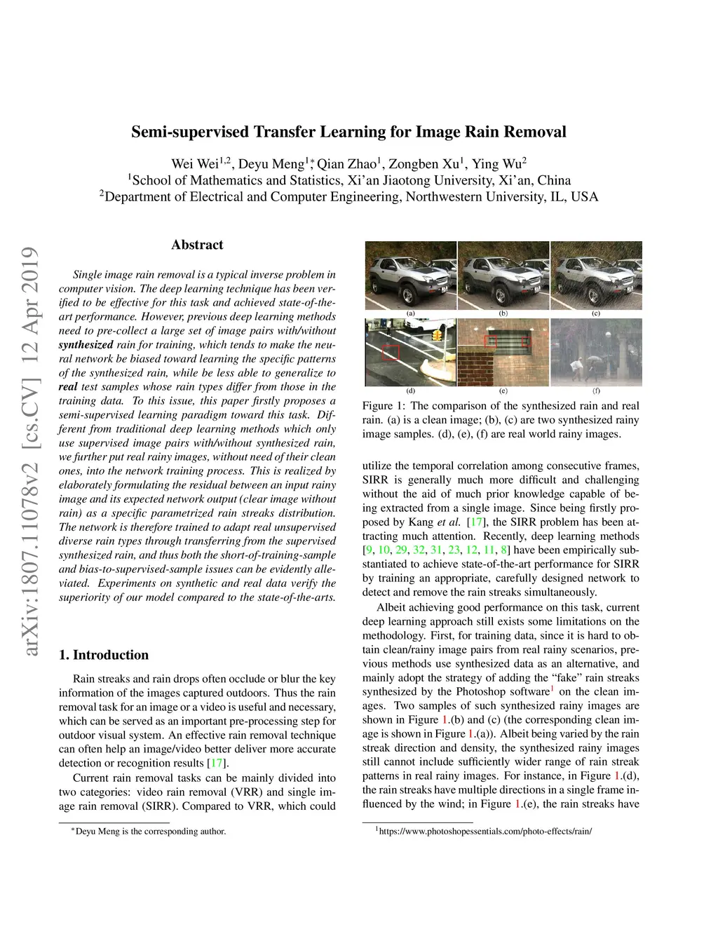 Semi-supervised Transfer Learning for Image Rain Removal