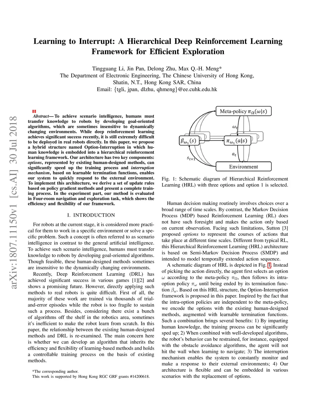 Learning to Interrupt: A Hierarchical Deep Reinforcement Learning