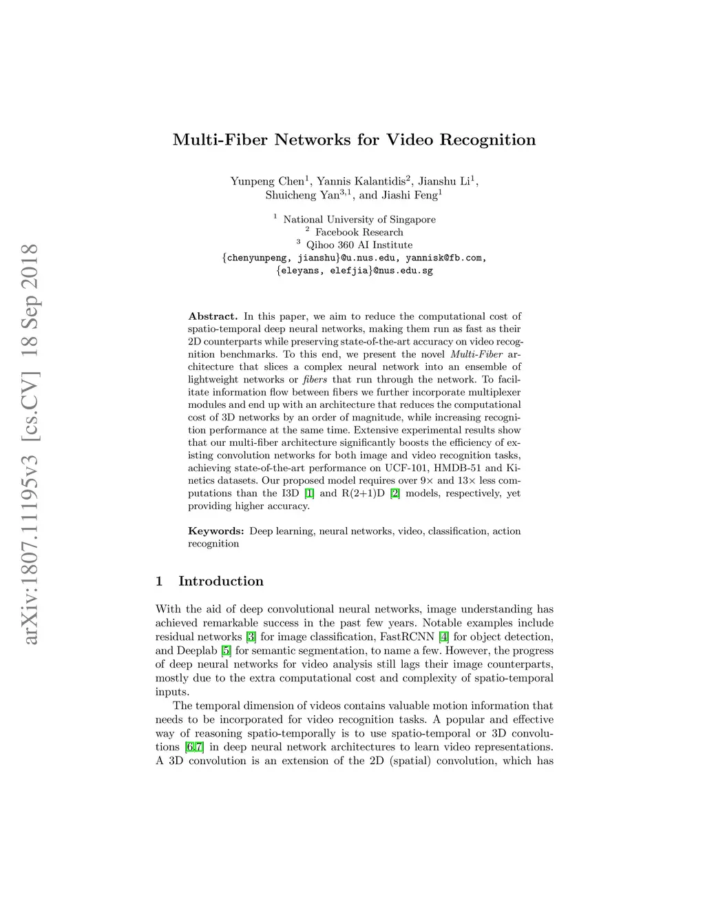 Multi-Fiber Networks for Video Recognition