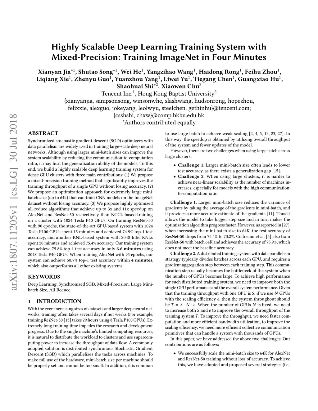 Highly Scalable Deep Learning Training System with Mixed-Precision: