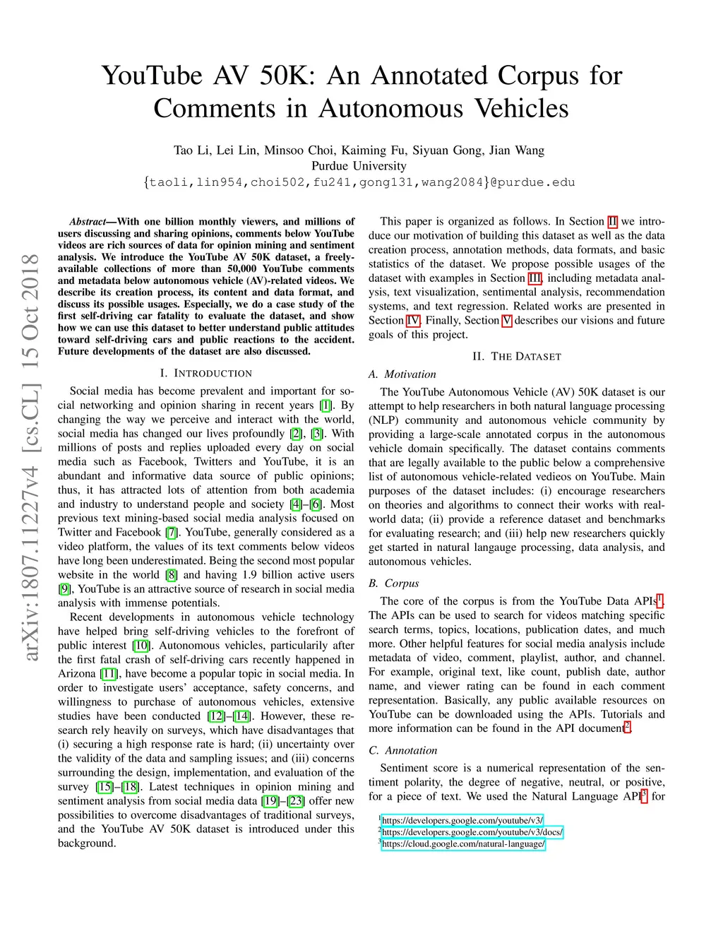 YouTube AV 50K: an Annotated Corpus for Comments in Autonomous Vehicles