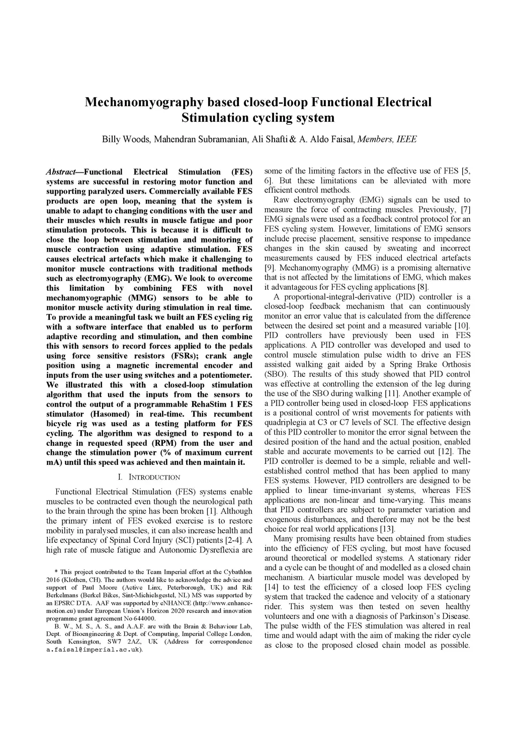 Mechanomyography based closed-loop Functional Electrical Stimulation