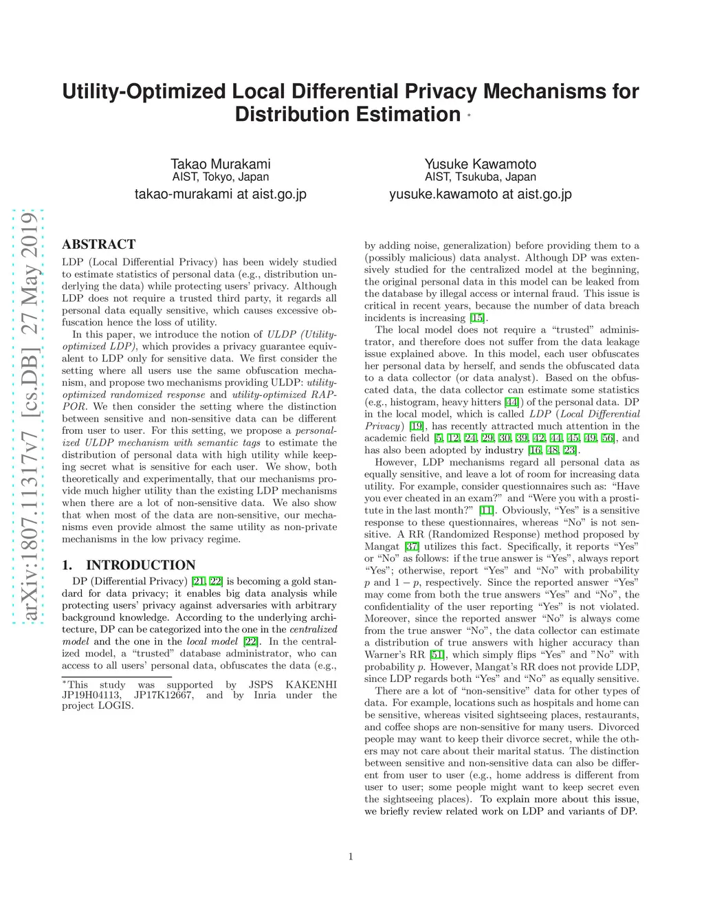 LDP (Local Differential Privacy) has been widely studied to estimate statistics of personal data (e.g., distribution underlying the data) while protecting users' privacy. Although LDP does not require a trusted third party, it regards all personal data equally sensitive, which causes excessive obfuscation hence the loss of utility. In this paper, we introduce the notion of ULDP (Utility-optimized LDP), which provides a privacy guarantee equivalent to LDP only for sensitive data. We first consider the setting where all users use the same obfuscation mechanism, and propose two mechanisms providing ULDP: utility-optimized randomized response and utility-optimized RAPPOR. We then consider the setting where the distinction between sensitive and non-sensitive data can be different from user to user. For this setting, we propose a personalized ULDP mechanism with semantic tags to estimate the distribution of personal data with high utility while keeping secret what is sensitive for each user. We show theoretically and experimentally that our mechanisms provide much higher utility than the existing LDP mechanisms when there are a lot of non-sensitive data. We also show that when most of the data are non-sensitive, our mechanisms even provide almost the same utility as non-private mechanisms in the low privacy regime.