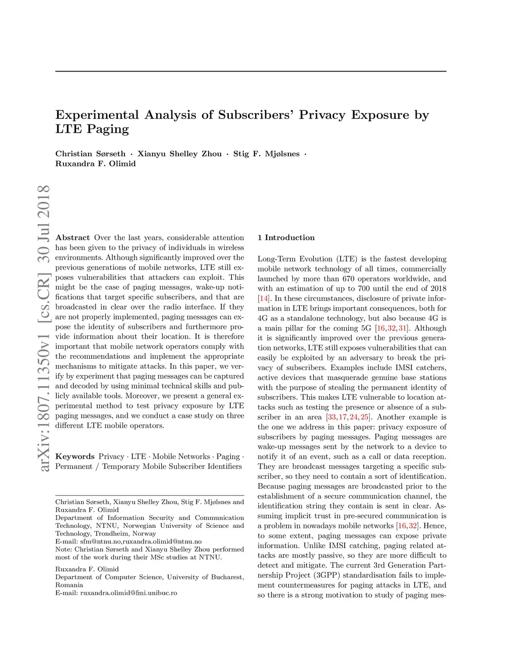 Experimental Analysis of Subscribers' Privacy Exposure by LTE Paging