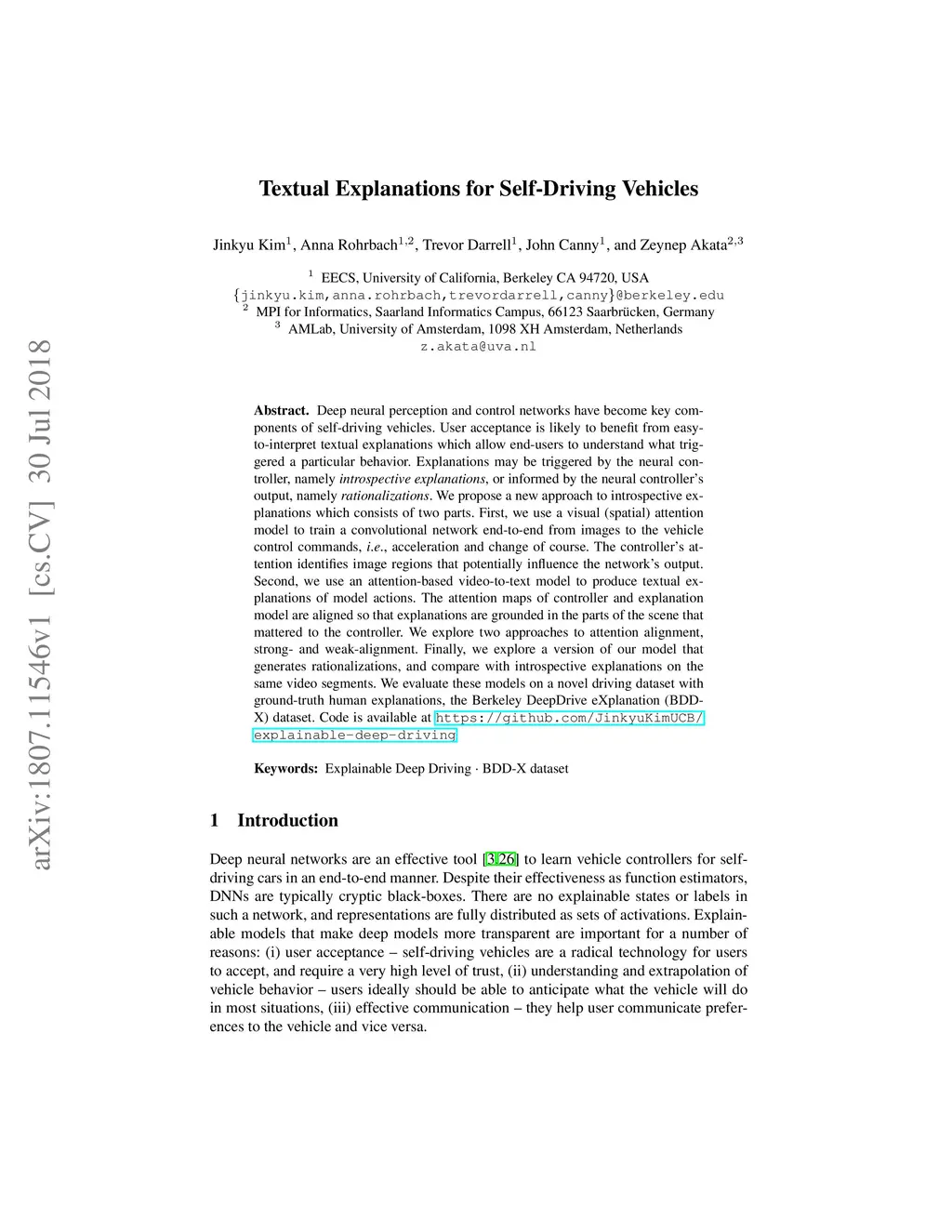 Textual Explanations for Self-Driving Vehicles