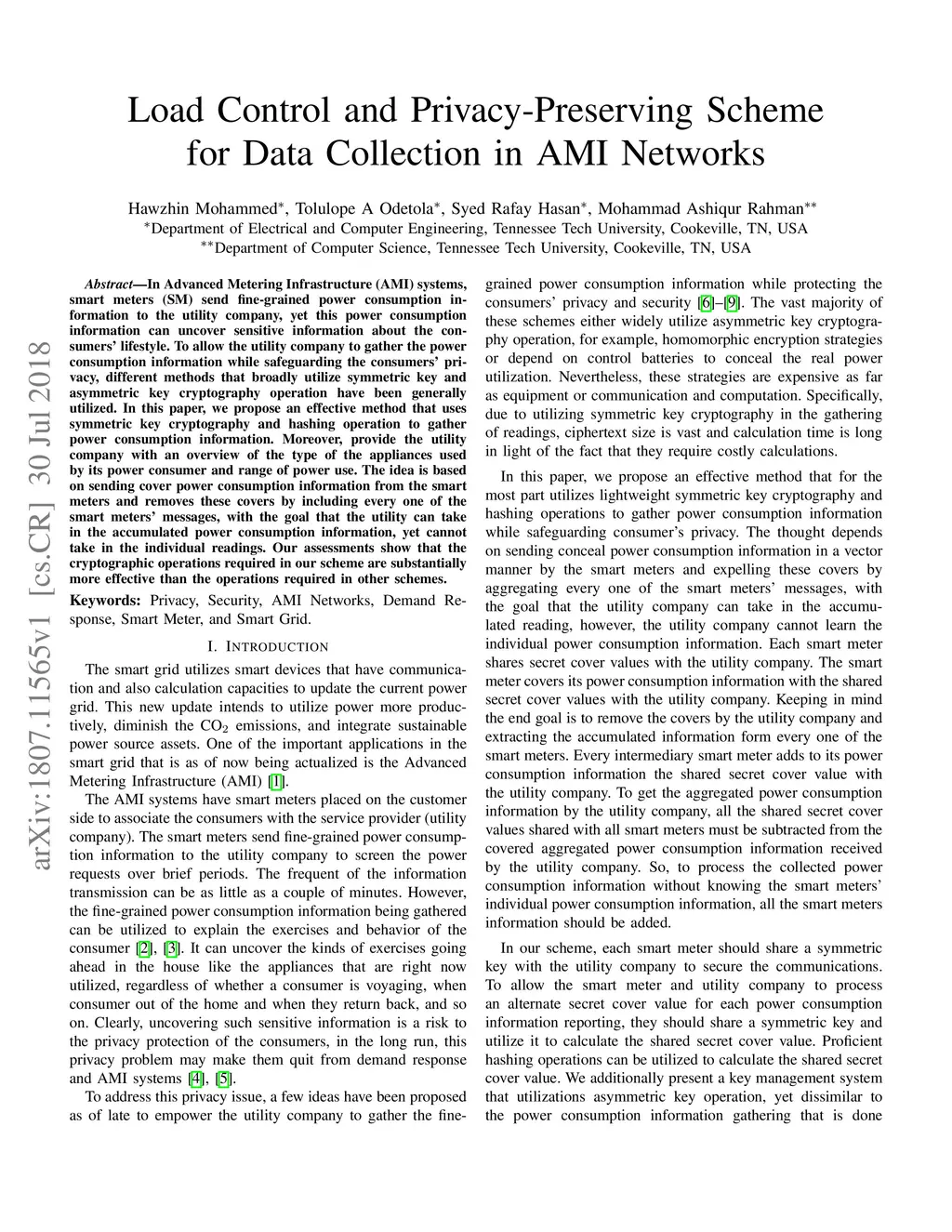 Load Control and Privacy-Preserving Scheme for Data Collection in AMI