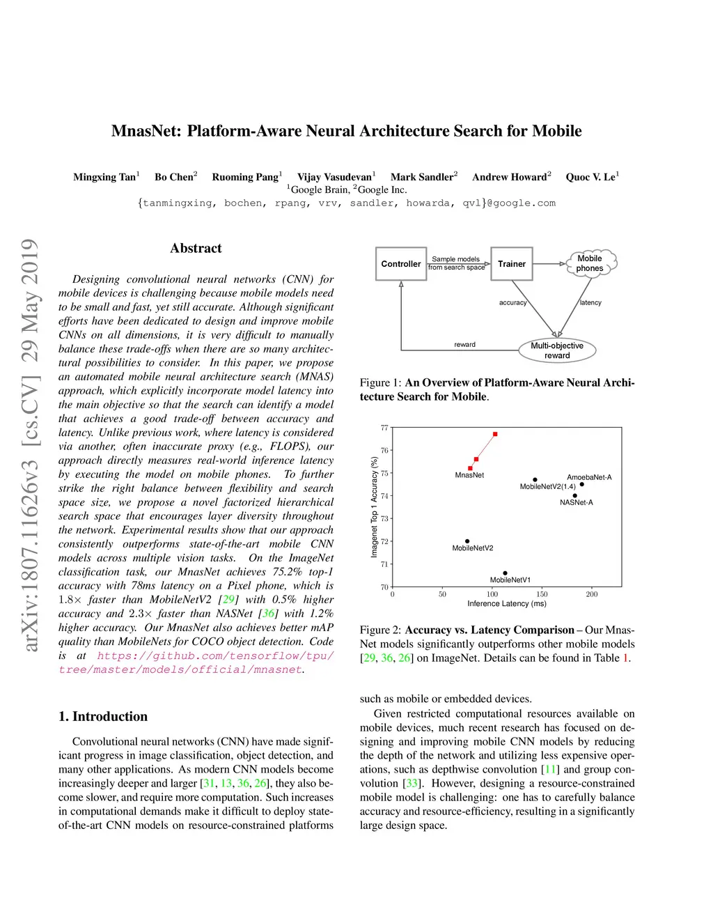 MnasNet: Platform-Aware Neural Architecture Search for Mobile