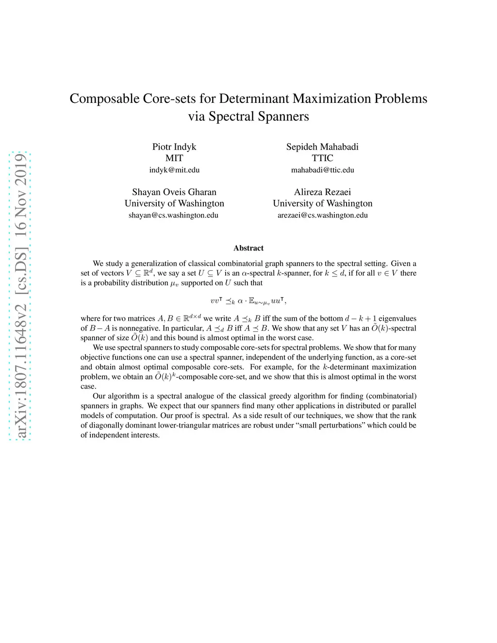 Composable Core-sets for Determinant Maximization Problems via Spectral