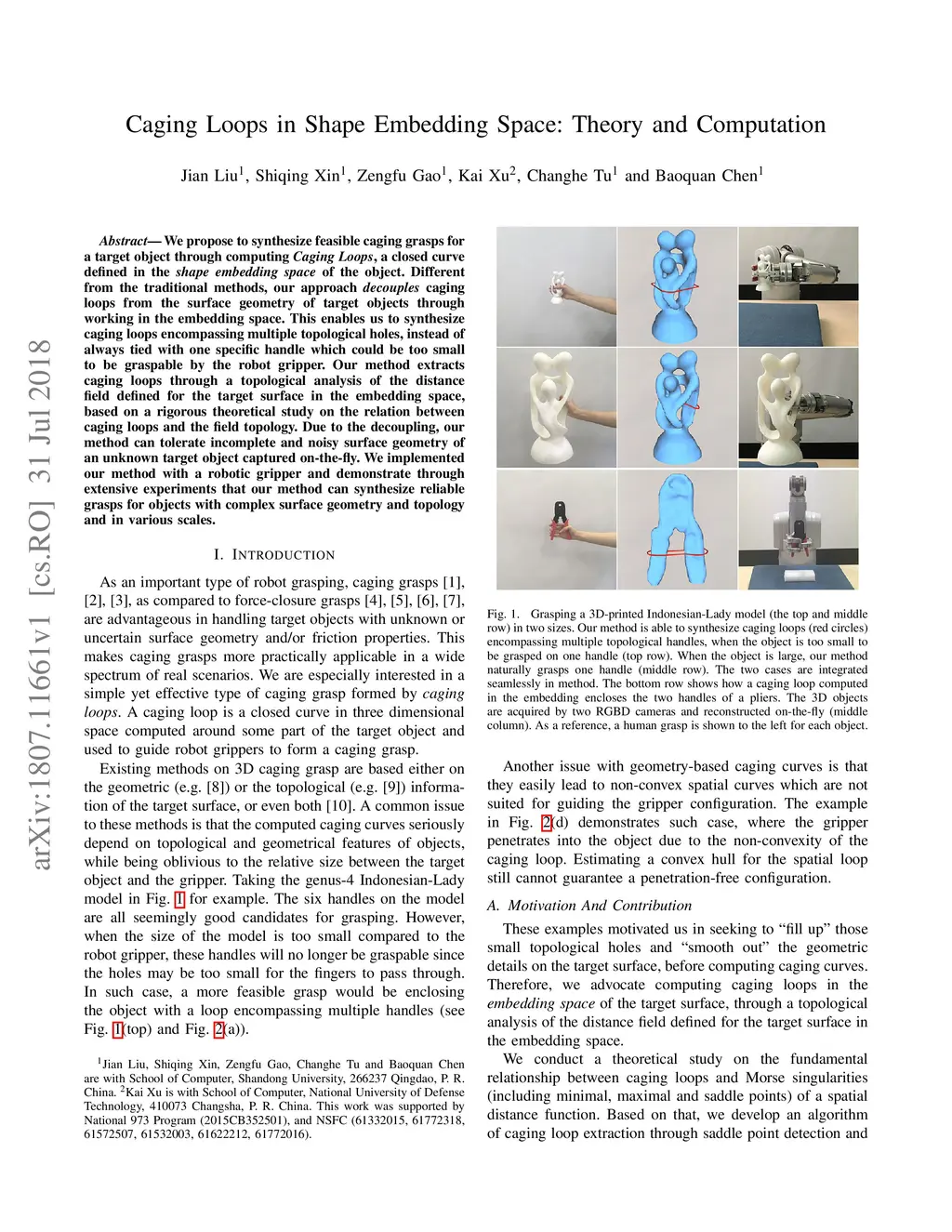 Caging Loops in Shape Embedding Space: Theory and Computation