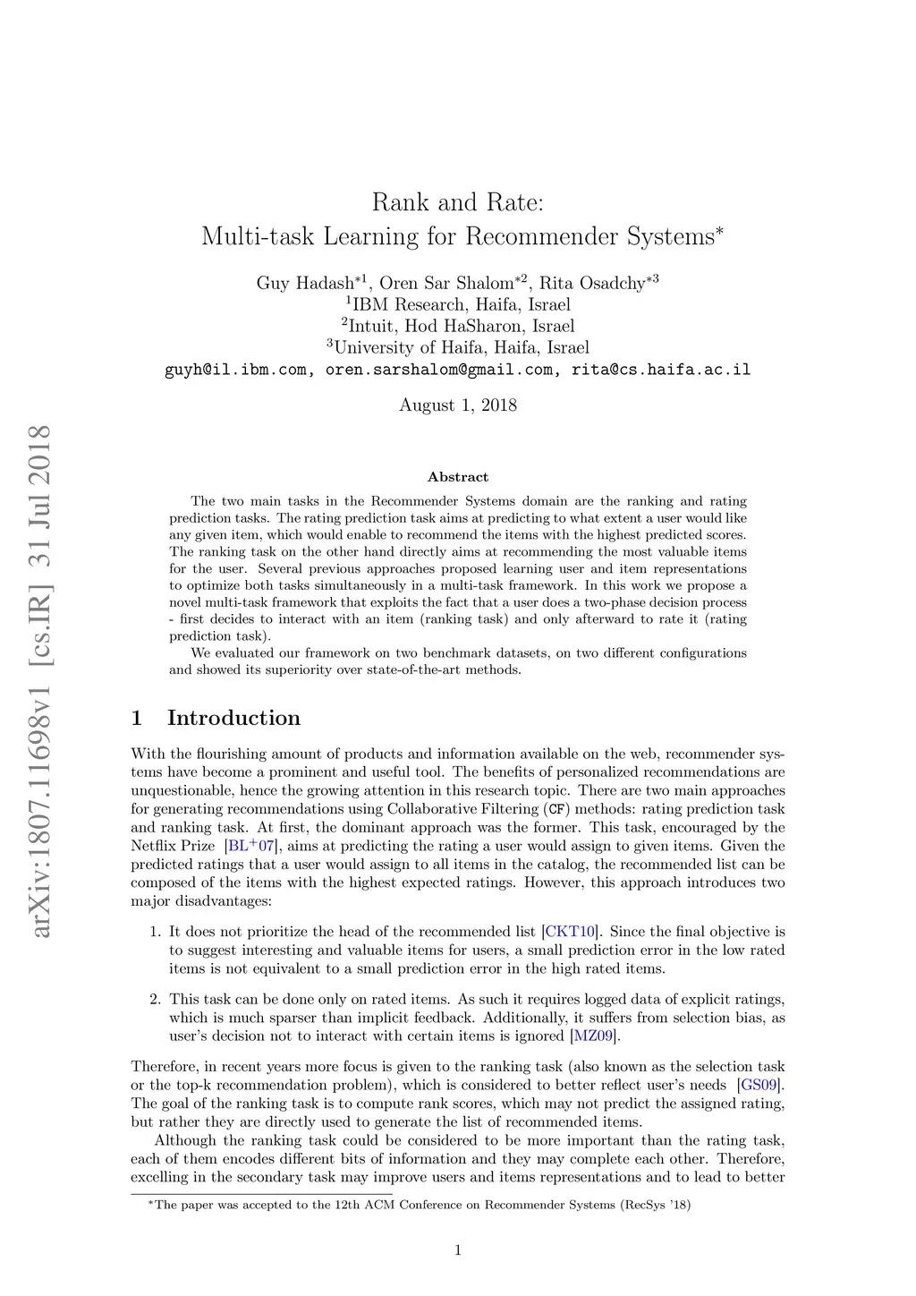 The two main tasks in the Recommender Systems domain are the ranking and rating prediction tasks. The rating prediction task aims at predicting to what extent a user would like any given item, which would enable to recommend the items with the highest predicted scores. The ranking task on the other hand directly aims at recommending the most valuable items for the user. Several previous approaches proposed learning user and item representations to optimize both tasks simultaneously in a multi-task framework. In this work we propose a novel multi-task framework that exploits the fact that a user does a two-phase decision process - first decides to interact with an item (ranking task) and only afterward to rate it (rating prediction task). We evaluated our framework on two benchmark datasets, on two different configurations and showed its superiority over state-of-the-art methods.