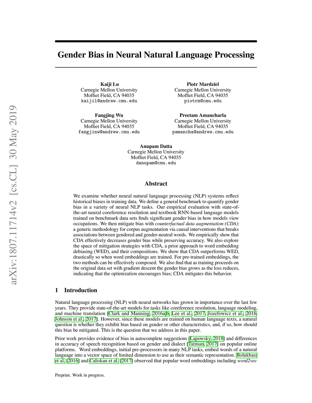 Gender Bias in Neural Natural Language Processing