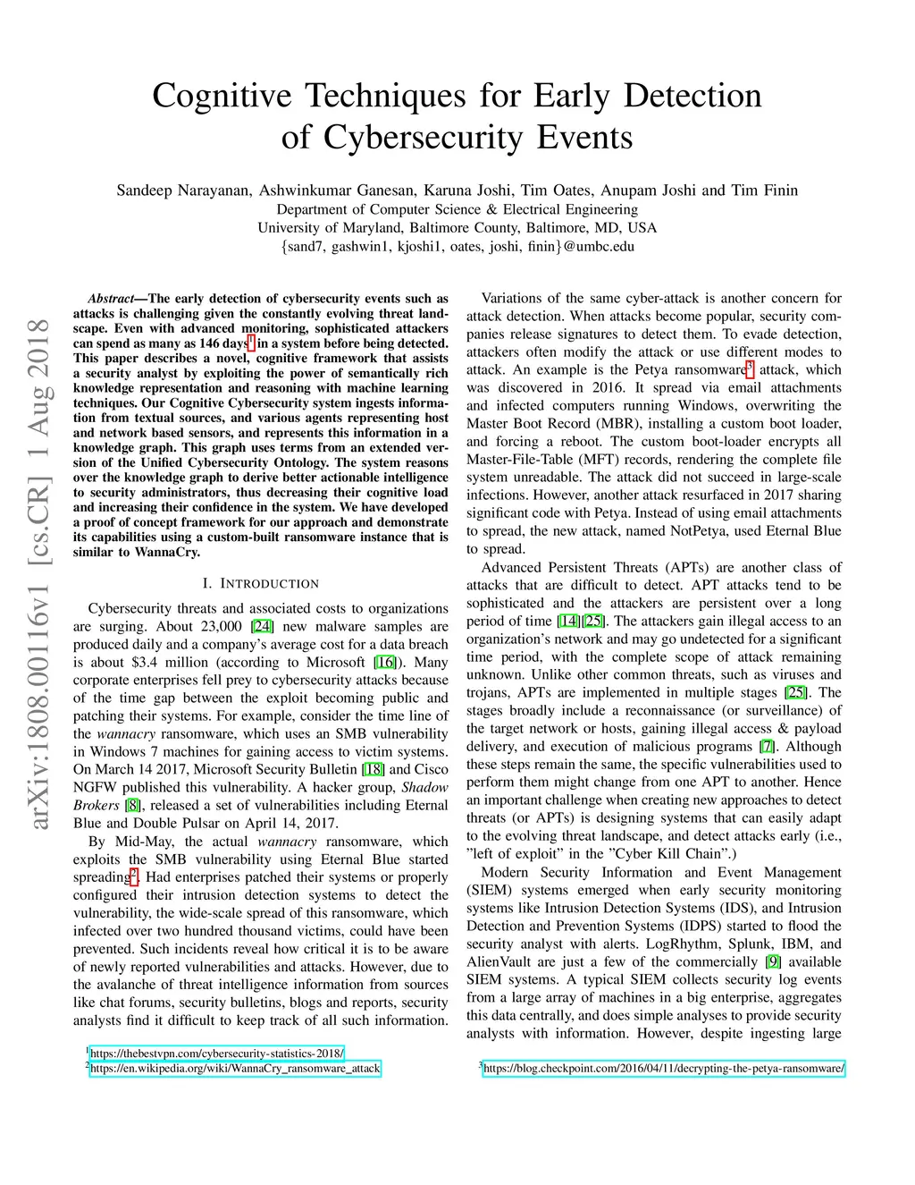 Cognitive Techniques for Early Detection of Cybersecurity Events