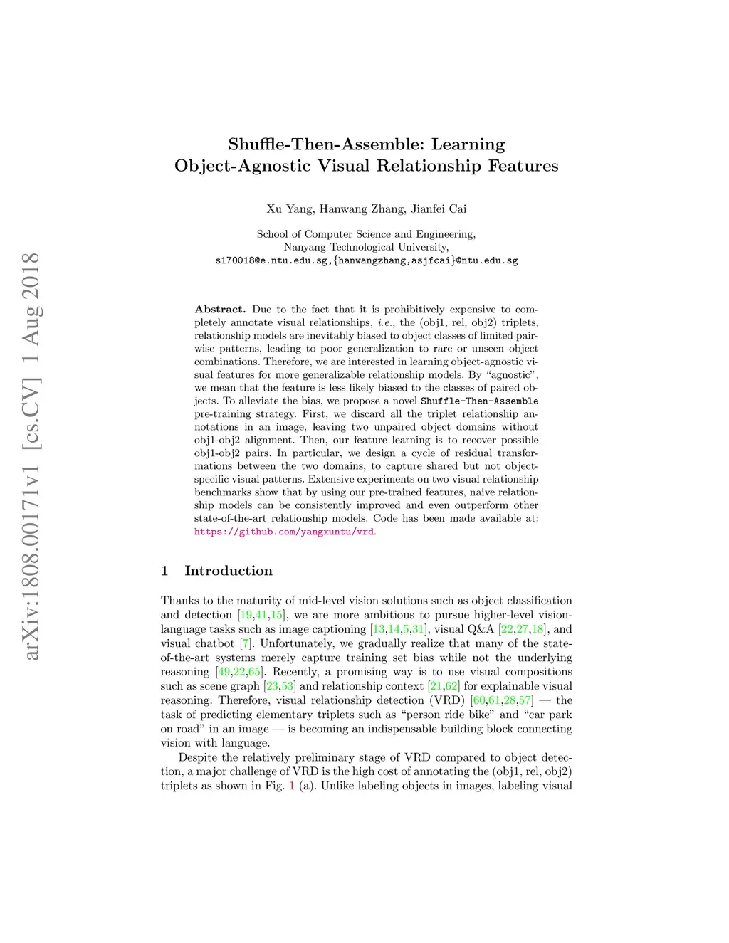 Shuffle-Then-Assemble: Learning Object-Agnostic Visual Relationship