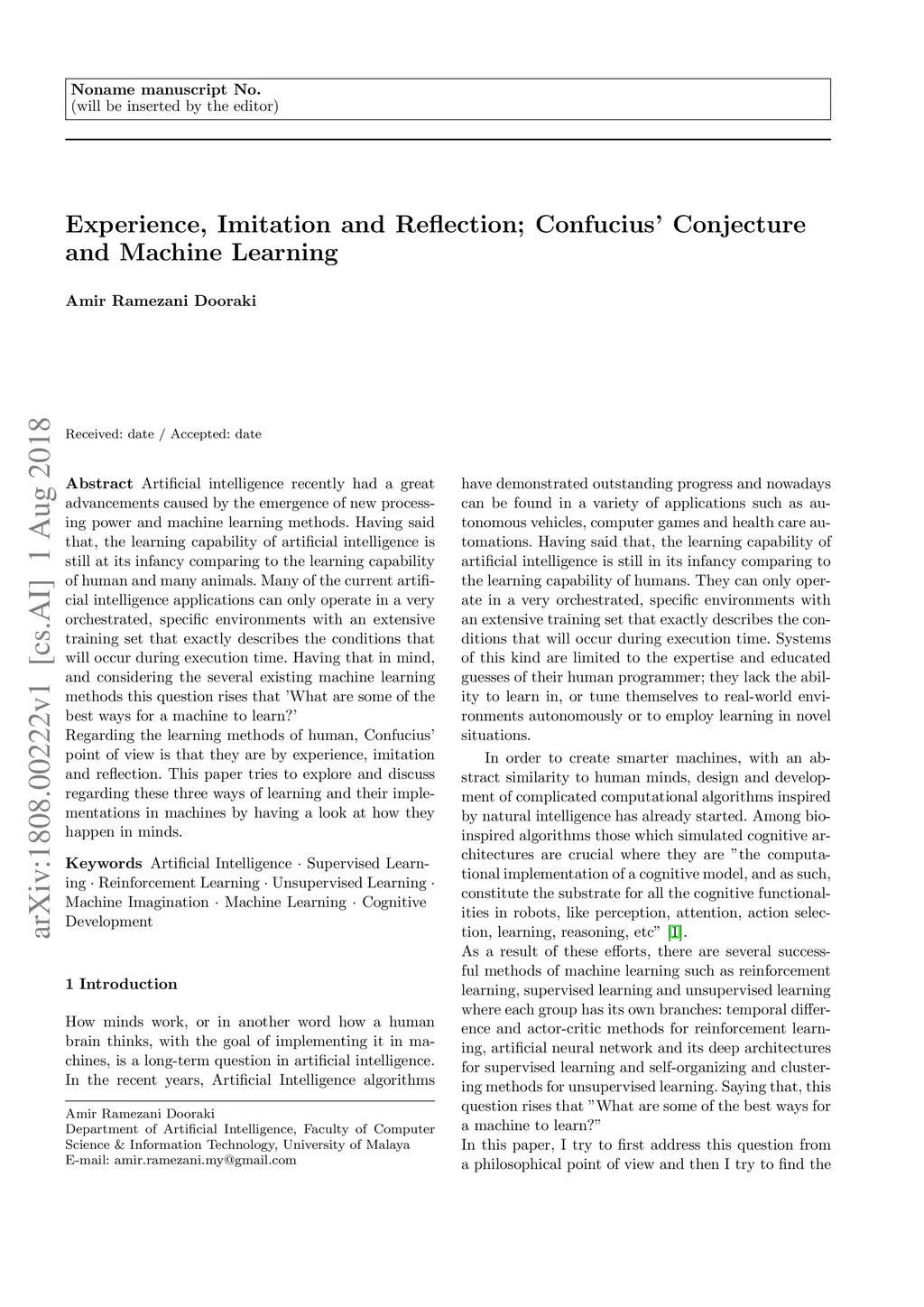 Experience, Imitation and Reflection; Confucius' Conjecture and Machine