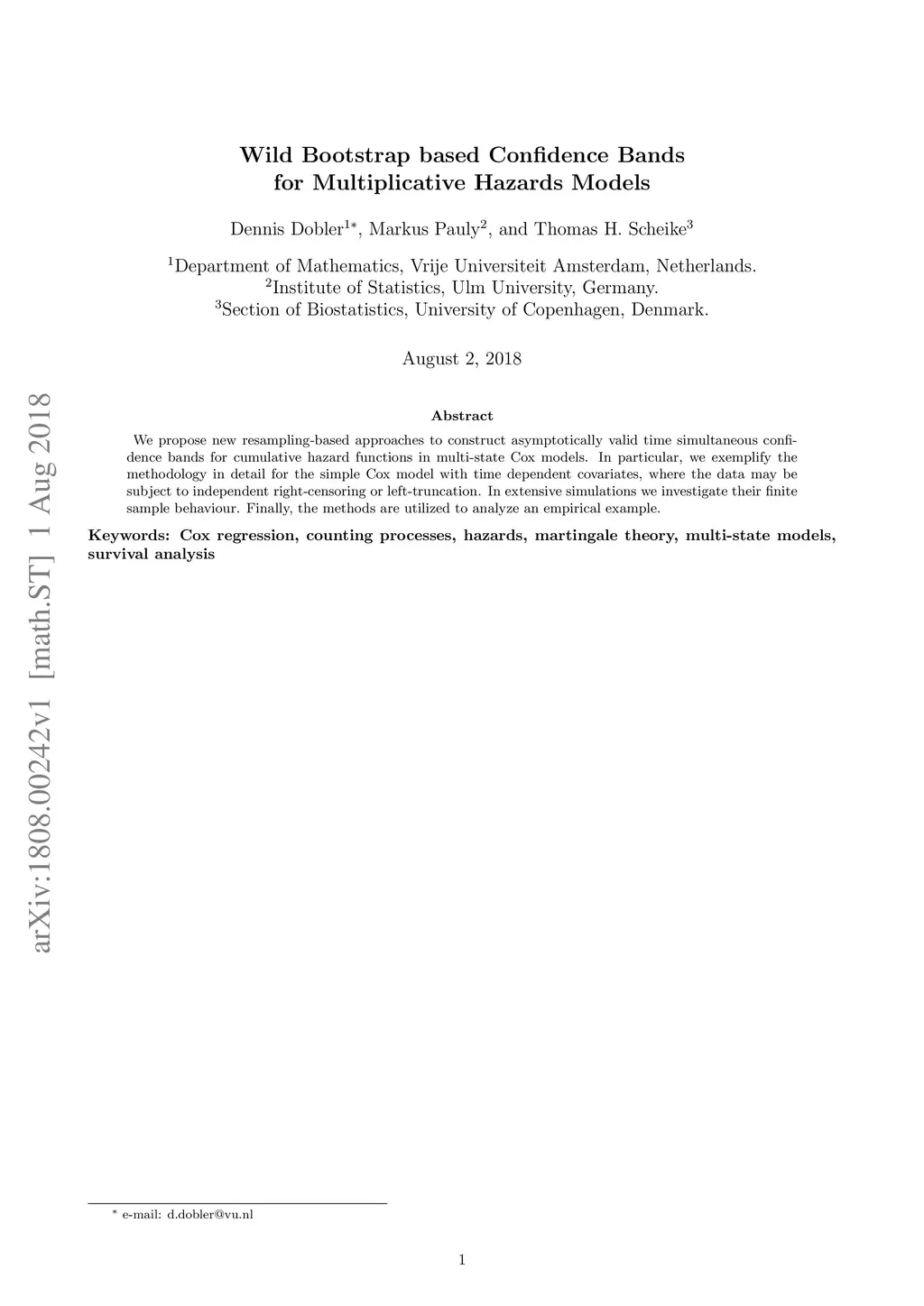 Wild Bootstrap based Confidence Bands for Multiplicative Hazards Models