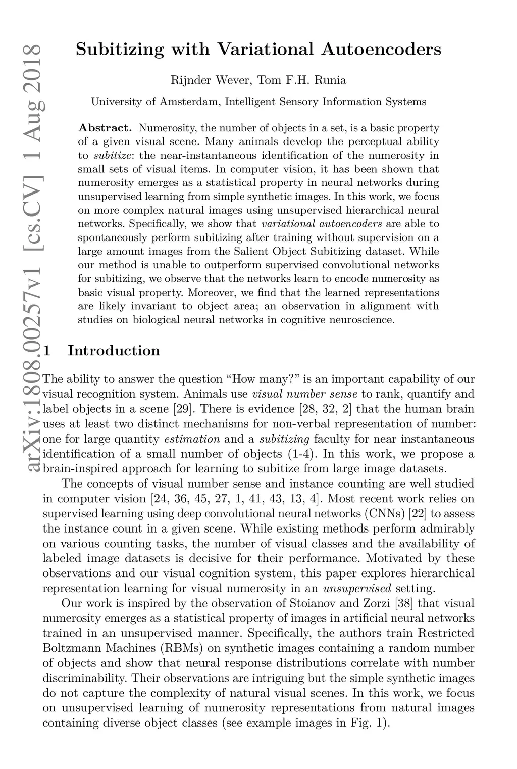 Subitizing with Variational Autoencoders