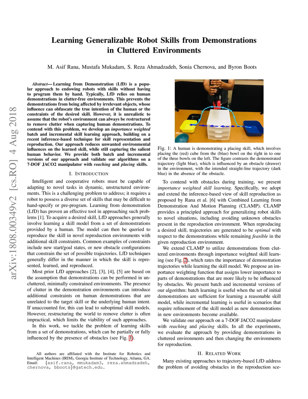 Learning Generalizable Robot Skills from Demonstrations in Cluttered