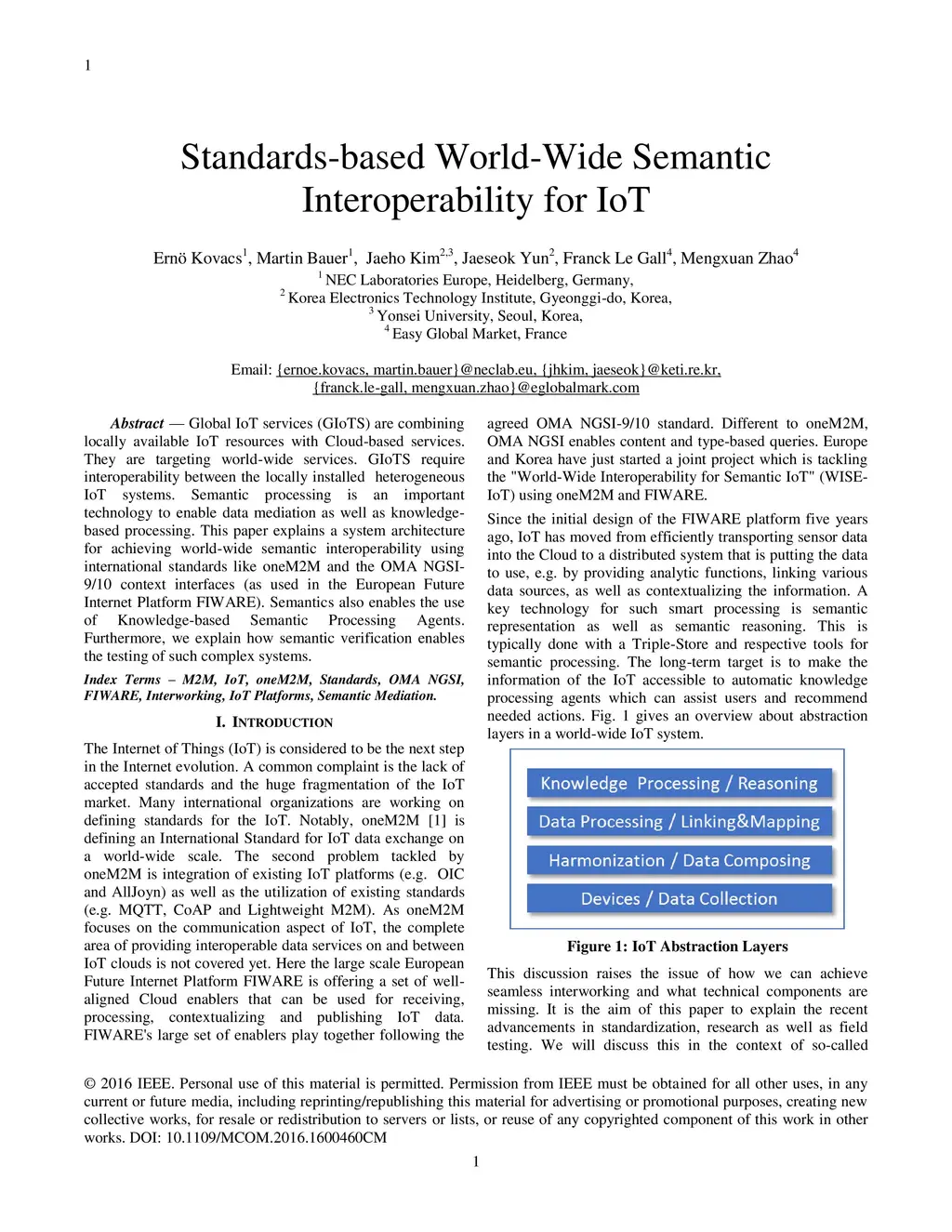 Standards-Based Worldwide Semantic Interoperability for IoT