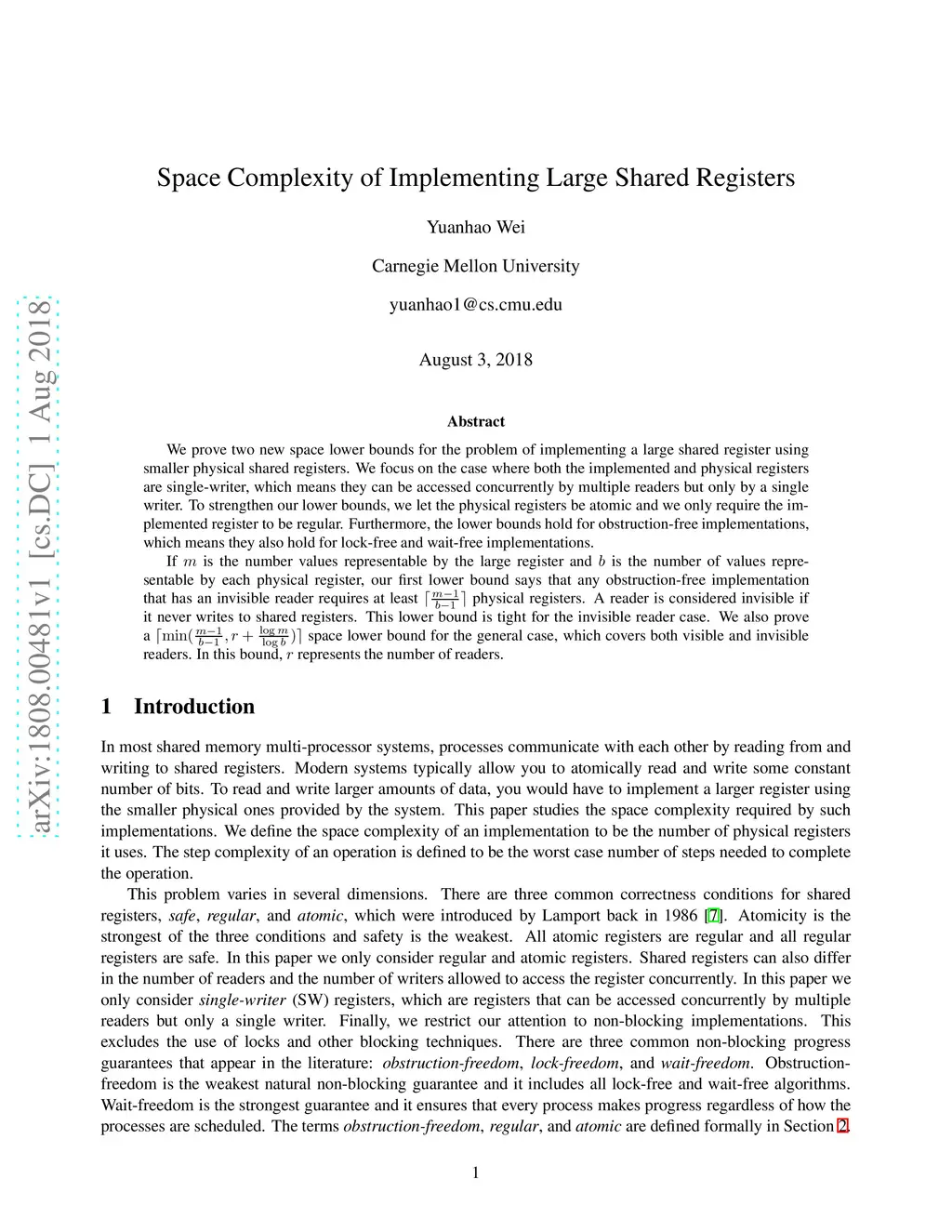 We prove two new space lower bounds for the problem of implementing a large shared register using smaller physical shared registers. We focus on the case where both the implemented and physical registers are single-writer, which means they can be accessed concurrently by multiple readers but only by a single writer. To strengthen our lower bounds, we let the physical registers be atomic and we only require the implemented register to be regular. Furthermore, the lower bounds hold for obstruction-free implementations, which means they also hold for lock-free and wait-free implementations. If is the number values representable by the large register and is the number of values representable by each physical register, our first lower bound says that any obstruction-free implementation that has an invisible reader requires at least physical registers. A reader is considered invisible if it never writes to shared registers. This lower bound is tight for the invisible reader case. We also prove a space lower bound for the general case, which covers both visible and invisible readers. In this bound, represents the number of readers.