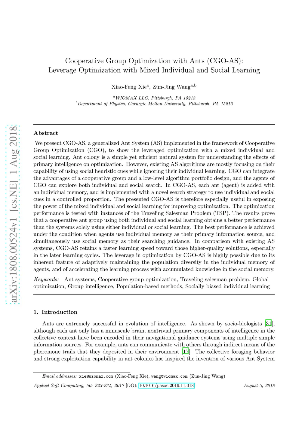 Cooperative Group Optimization with Ants (CGO-AS): Leverage Optimization