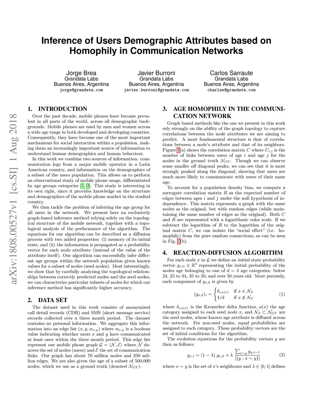 Over the past decade, mobile phones have become prevalent in all parts of the world, across all demographic backgrounds. Mobile phones are used by men and women across a wide age range in both developed and developing countries. Consequently, they have become one of the most important mechanisms for social interaction within a population, making them an increasingly important source of information to understand human demographics and human behaviour. In this work we combine two sources of information: communication logs from a major mobile operator in a Latin American country, and information on the demographics of a subset of the users population. This allows us to perform an observational study of mobile phone usage, differentiated by age groups categories. This study is interesting in its own right, since it provides knowledge on the structure and demographics of the mobile phone market in the studied country. We then tackle the problem of inferring the age group for all users in the network. We present here an exclusively graph-based inference method relying solely on the topological structure of the mobile network, together with a topological analysis of the performance of the algorithm. The equations for our algorithm can be described as a diffusion process with two added properties: (i) memory of its initial state, and (ii) the information is propagated as a probability vector for each node attribute (instead of the value of the attribute itself). Our algorithm can successfully infer different age groups within the network population given known values for a subset of nodes (seed nodes). Most interestingly, we show that by carefully analysing the topological relationships between correctly predicted nodes and the seed nodes, we can characterize particular subsets of nodes for which our inference method has significantly higher accuracy.