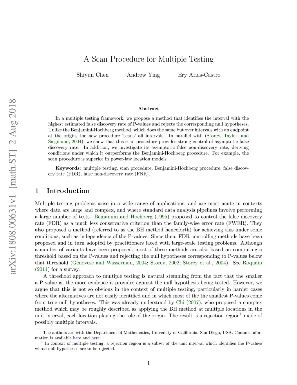 In a multiple testing framework, we propose a method that identifies the interval with the highest estimated false discovery rate of P-values and rejects the corresponding null hypotheses. Unlike the Benjamini-Hochberg method, which does the same but over intervals with an endpoint at the origin, the new procedure `scans' all intervals. In parallel with \citep*{storey2004strong}, we show that this scan procedure provides strong control of asymptotic false discovery rate. In addition, we investigate its asymptotic false non-discovery rate, deriving conditions under which it outperforms the Benjamini-Hochberg procedure. For example, the scan procedure is superior in power-law location models.