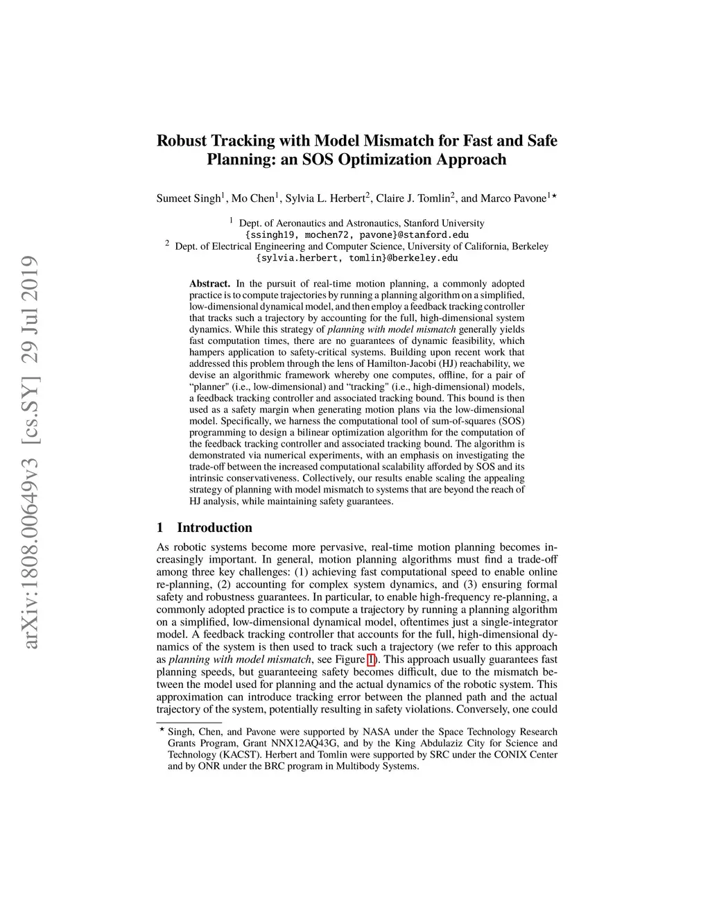 Robust Tracking with Model Mismatch for Fast and Safe Planning: an SOS