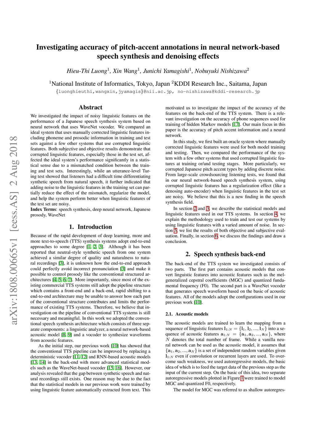 network-based speech synthesis and denoising effects